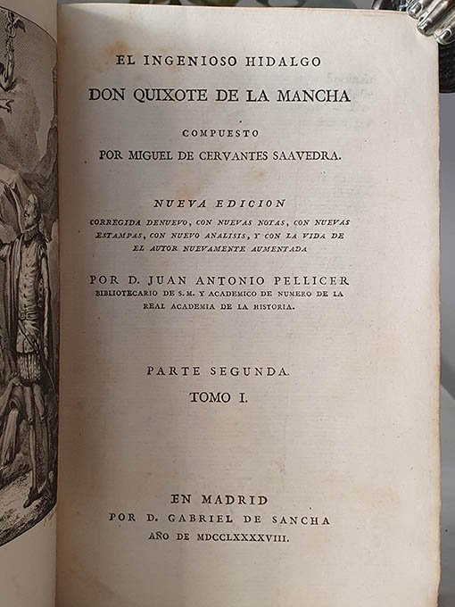 El ingenioso hidalgo Don Quixote de la Mancha. Compuesto por… Nueva Edición corregida de nuevo, con nuevas notas, con nuevas estampas, con nuevo análisis y con la vida de el autor nuevamente aumentada. Parte Segunda, Tomo I.