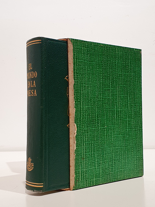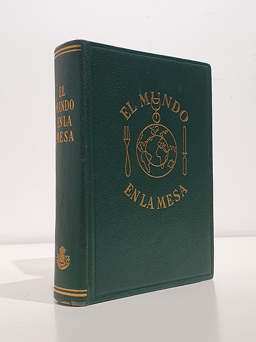 Publicado: Madrid: Ediciones Castilla 1961 Autor: Doré Ogrizek. Título: EL MUNDO EN LA MESA-Guia diccionario de la gastronomia inernacional Encuadernación: Encuadernación de tapa dura Estado: Como nuevo Información adicional: 8vo. 519 pp. + 16 hojas de glosario en varias lenguas. Plena piel editorial verde con dorados-. Como nuevo.