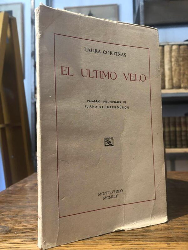 Publicado: Montevideo: Ediciones M, 1953 Autor: CORTINAS, Laura. Título: El último velo. Palabras preliminares de Juana de Ibarbourou. Encuadernación: Rústica Estado: Bien Información adicional: 8vo. 175 pp. Encuadernación editorial con solapas, dedicatoria autógrafa de la autora. Alguna rozadura leve.