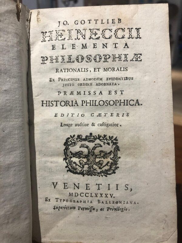 Elementa Philosophiae rationalis et moralis. Ex Principiis Admonium Evidentibus Justo Ordine Adornata. Praemissa est Historia Philosophica. Editio Caeteris. Longe auctior & castigator.