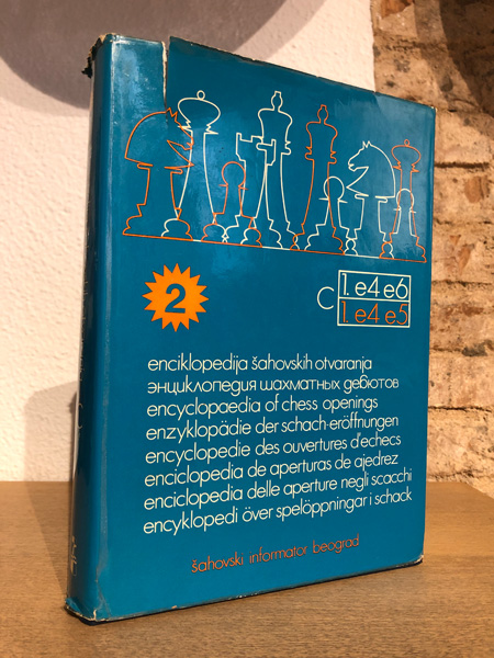 Publicado: Beograd: Shaovski Informator, 1981 Título: ENCICLOPEDIA DE APERTURAS DE AJEDREZ. INFORMADOR AJEDRECISTICO. C: 1. e4, e6; 1. e4, e5. ISBN: 867297008X Encuadernación: Encuadernación de tapa dura Estado: Bien Información adicional: 4to. 487 pp. + 2h. Enc. Guaflex editorial con sobrecubierta. Alguna espóradica señal de antiguo poseedor en algunas jugadas. Sobrecubierta rasgada en su parte superior según foto. Buen estado.