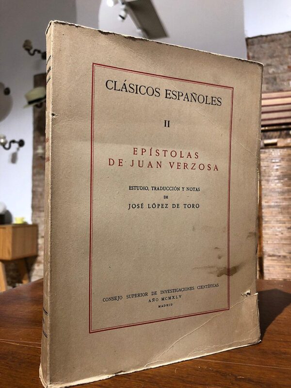 Publicado: Madrid: Consejo Superior de Investigaciones Científicas, 1945 Autor: VERZOSA, Juan. (José LÓPEZ TORO, ed.) Título: Epístolas de Juan Verzosa. Encuadernación: Encuadernación de tapa blanda Estado: Bien Información adicional: Folio, XC pp. + 296 pp. Rústica, ejemplar intonso, buen estado.