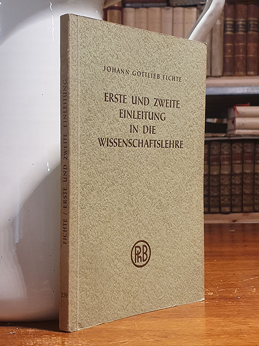 Publicado: Hamburg: Felix Meiner Verlag 1954 Autor: Fichte, Johann Gottlieb: Título: Erste und zweite Einleitung in die Wissenschaftslehre, und Versuch einer neuen Darstellung der Wissenschaftslehre. [= Meiner Philosophische Bibliothek, 239] Hrsg. v. Fritz Medicus. Encuadernación: Rústica Estado: Muy bien Información adicional: 8vo. 121 pp. In original paper wraps. Very good condition.