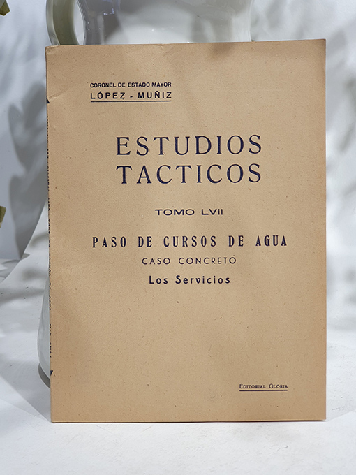Publicado: Madrid: Editorial Gloria 1949 Autor: LÓPEZ MUÑIZ. Título: Estudios Tácticos, Tomo LVII. Paso de cursos de agua. Caso concreto: Los servicios. Encuadernación: Rústica Estado: Muy bien Información adicional: 8vo. 62 pp. Rústica, perfecto estado.