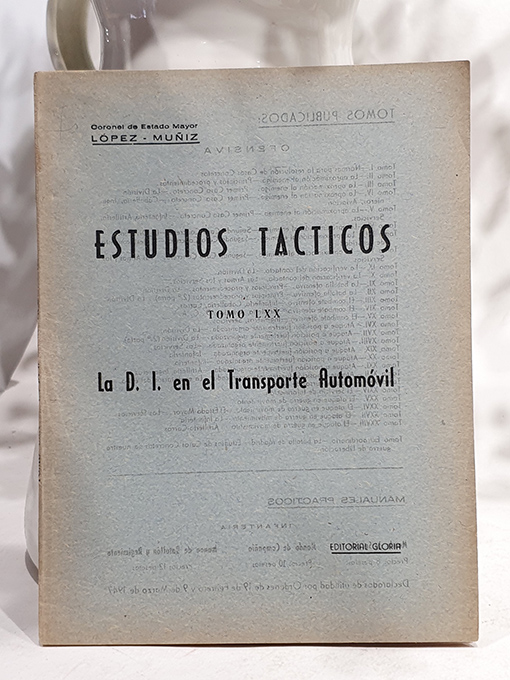Publicado: Madrid: Editorial Gloria 1951 Autor: LÓPEZ MUÑIZ. Título: Estudios Tácticos, Tomo LXX. La D. I. en el transporte de automóvil. Encuadernación: Rústica Estado: Muy bien Información adicional: 8vo. 62 pp. Rústica, perfecto estado.