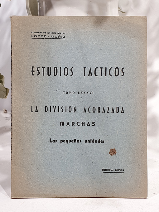 Publicado: Madrid: Editorial Gloria 1952 Autor: LÓPEZ MUÑIZ Título: Estudios Tácticos, Tomo LXXXVI. La División Acorazada. Las marchas. Las pequeñas Unidades. Encuadernación: Rústica Estado: Muy bien Información adicional: 8vo. 60 pp. Rústica, perfecto estado.