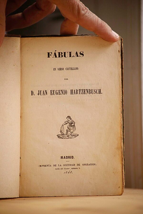 Publicado: Madrid : Sociedad de Operarios, 1848 Autor: HARTZENBUSCH, Eugenio de. Título: Fábulas en verso castellano por... Información adicional: 8vo. 125 pp. 2h.Enc. en cartoné deteriorada. Manchas óxido.