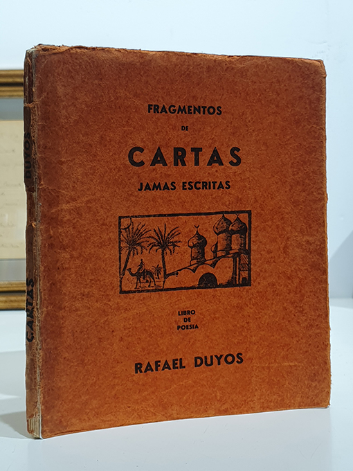 Publicado: Tánger: Francisco Erola 1936 Autor: DUYOS, Rafael. Título: Fragmentos de cartas jamás escritas. Libro de poesía. Encuadernación: Rústica Estado: Aceptable Información adicional: 8vo. 70 pp. Encuadernación editorial con solapas. Lomo deteriorado según fotos. Interior en buen estado.