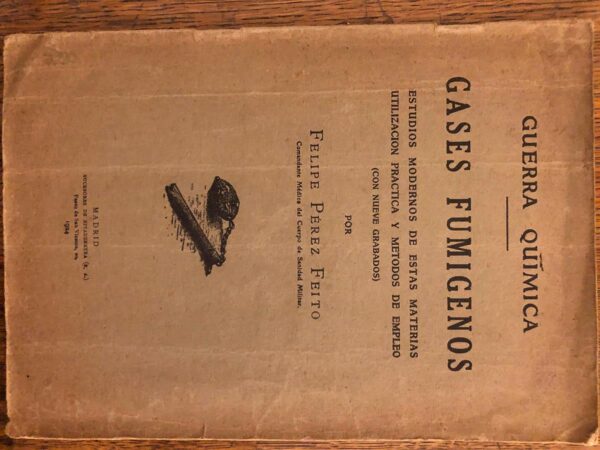 Publicado: Madrid: Sucesores de Rivadeneyra, 1924 Autor: PÉREZ FEITO, Felipe. Título: Gases Fumígenos. Estudios modernos de estas materias, utilización práctica y métodos de empleo. Con nueve grabados. Encuadernación: Rústica Estado: Pobre Información adicional: 4to. 19 pp. Rústica. Fatigado.