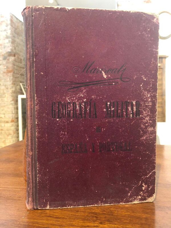 Publicado: Valladolid: F. Santaren Madrazo, 1912 Autor: MARISCAL, Leandro. Título: Geografía militar de España y Portugal por... Octava edición corregida y aumentada. Encuadernación: Encuadernación de tapa dura Información adicional: 4to. 431 pp. Encuadernación tela cartoné fatigada, interior bien.