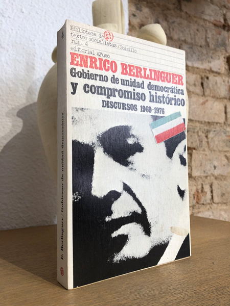 Publicado: Madrid: Editorial Ayuso, 1977 Autor: BERLINGUER, Enrico. Título: Gobierno de unidad democratica y compromiso. ISBN: 8433601296 Encuadernación: Rústica Estado: Muy bien Información adicional: 8vo. 246 pp. Rústica en perfecto estado.