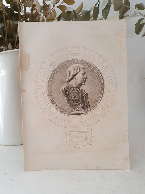 Título: [Grabado al acero] Retrato de D. Alfonso VI. Rey de Aragón, de Nápoles y Sicilia. 1394 - 1458. Encuadernación: Sin encuadernar Estado: Bien Información adicional: Folio, 33x24 cm. Buen estado. Perfecta para enmarcar.