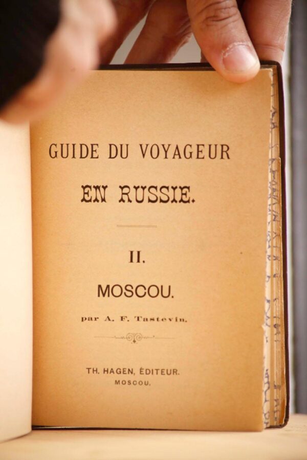 Publicado: Moscú, Th. Hagen, 1891 Autor: TASTEVIN, A. F. Título: Guide du voyageur en Russie II. Moscou. Información adicional: 8vo. 206 pp. Mapas. Tela editorial con estampaciones doradas. Perfecto estado.