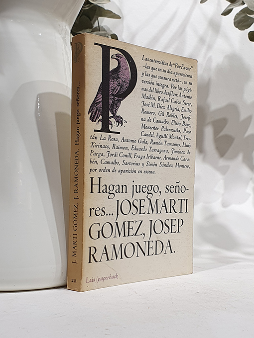 Publicado: Barcelona: Laia 1976 Autor: MARTÍ GÓMEZ, José / Josep RAMONEDA. Título: Hagan juego, señores... ISBN: 8472228711 Encuadernación: Rústica Estado: Bien Información adicional: 8vo. 240 pp. + 3 h. En rústica. Buen estado.