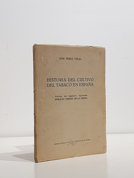 Publicado: Madrid: Servicio Nacional de cultivo y fermentación del tabaco 1956 Autor: PÉREZ VIDAL, José. Título: Historia del cultivo del tabaco en España. Encuadernación: Rústica Estado: Aceptable Información adicional: 4to. menor, 157 pp. + 1 h. + 13 láminas 1 estado plegado. Rústica, cubierta levemente deslucida pero en aceptable estado.