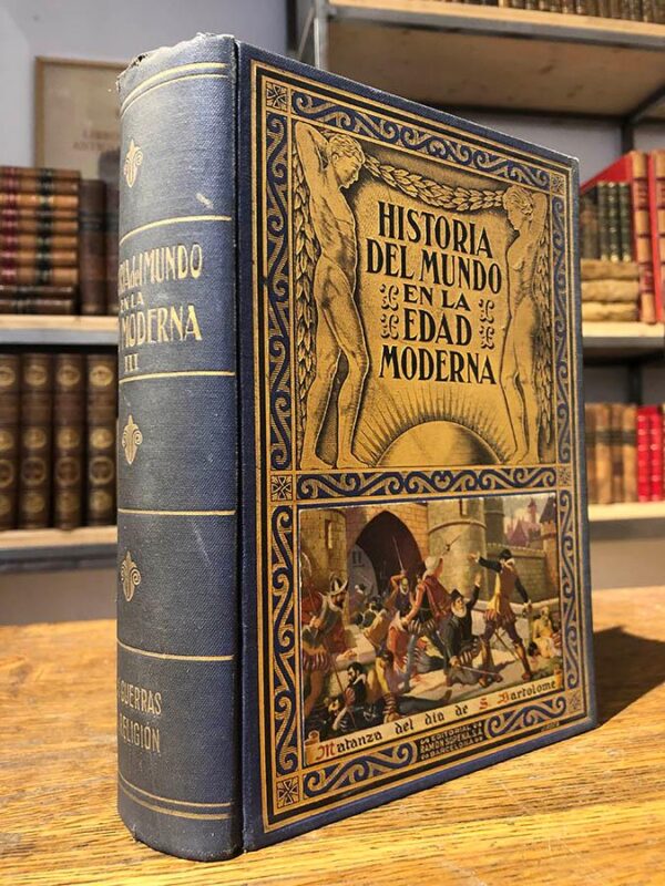 Publicado: Barcelona: Editorial Ramón Sopena, 1940 Título: Historia del Mundo en la Edad Moderna. Tomo III. Las Guerras de Religión. Encuadernación: Encuadernación de tapa dura Estado: Bien Información adicional: 4to. 879 pp. Tela editorial estampada. Leves rozaduras en lomo según fotos. En buen estado.