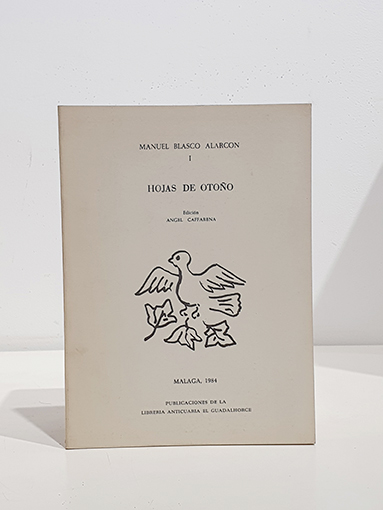 Publicado: Málaga: Pub. de la Librería Anticuaria el Guadalhorce 1984 Autor: BLASCO ALARCON, Manuel Título: Hojas de otoño. Edición de Ángel Caffarena Encuadernación: Rústica Estado: Muy bien Información adicional: 8vo. 82 pp. + 1 h. Rústica, dedicado por el autor. Perfecto estado.