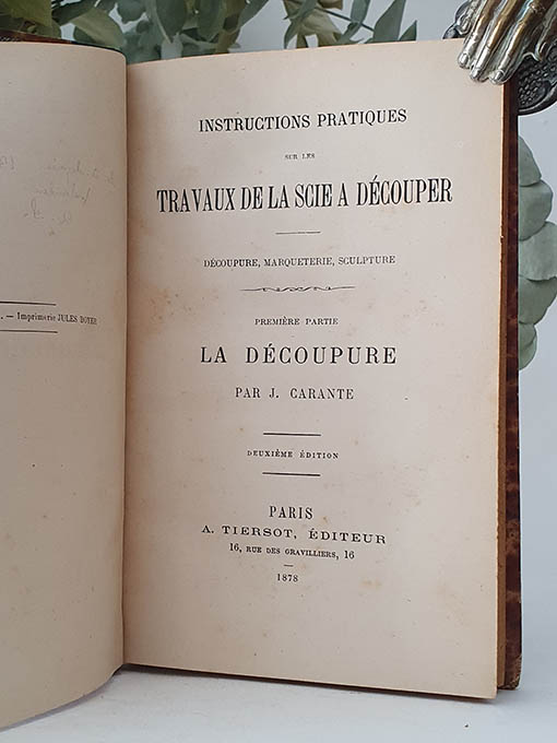 Instructions pratiques sur les travaux de la scie à découper. Découpure, Marqueterie, Sculpture. Première partie: La Découpure. [Instrucciones prácticas sobre el trabajo de la sierra de corte] En francés.