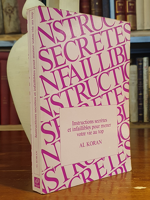 Publicado: Centre De Recherche 1990 Autor: Al Koran Título: Instructions secrètes et infaillibles pour mener une vie au top. Encuadernación: Rústica Estado: Aceptable Información adicional: 8vo. 289 pp. In original paper wraps. Good condition, used but not abused.