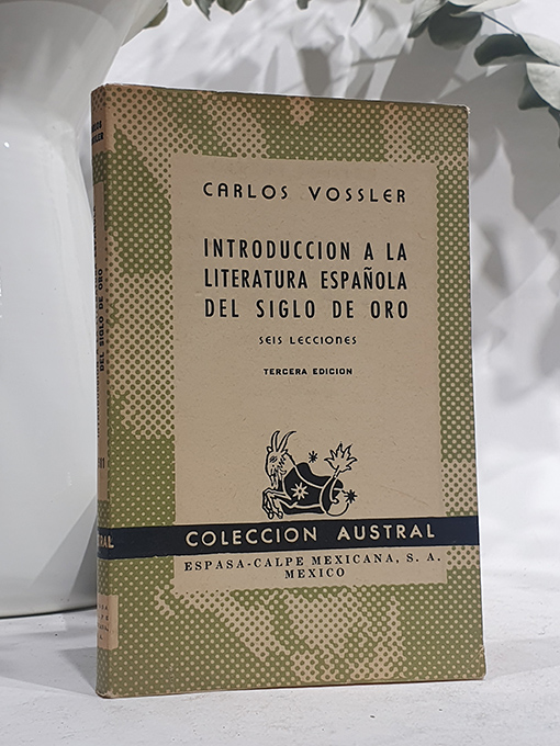 Publicado: Madrid: Espasa Calpe 1961 Autor: VOSSLER, Carlos. Título: Introducción a la literatura española del siglo de oro. Seis lecciones. Colección Austral, 511. Encuadernación: Encuadernación de tapa blanda Estado: Muy bien Información adicional: 8vo. 146 pp. Rústica, un par de párrafos subrayados, por lo demás ejemplar bien cuidado.