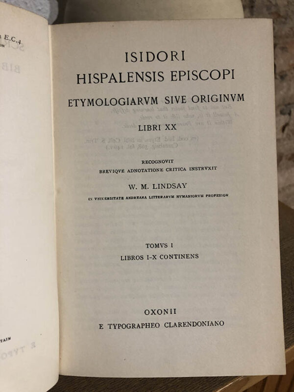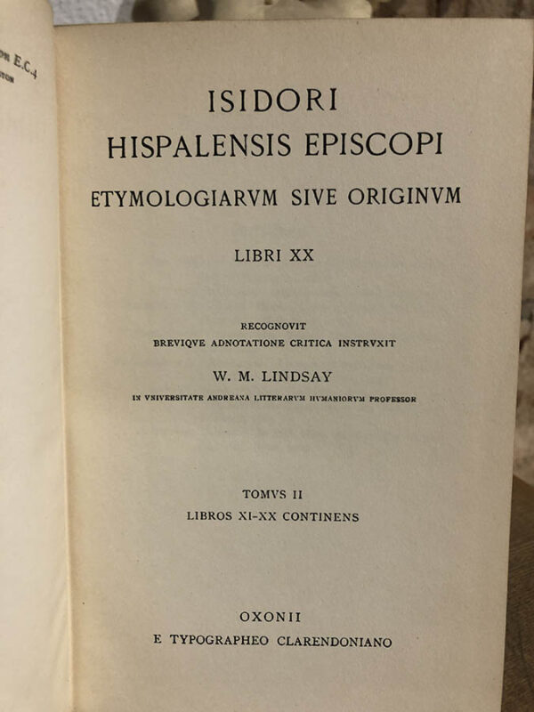 Isidori Hispalensis Episcopi: Etymologiarum Sive Originum, Libri XX : Tomus I, Libros I-X et Tomus II, Libros XI-XX. 2 tomos, completo.