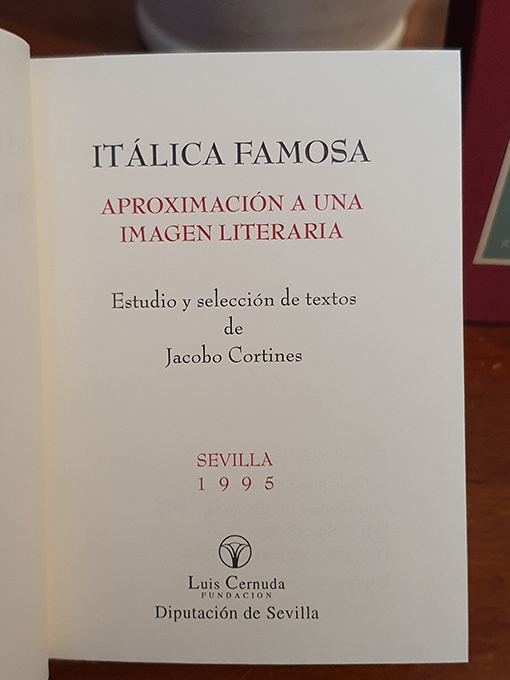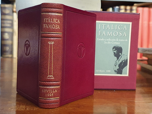 Publicado: Sevilla: Fundación Luis Cernuda / Diputación de Sevilla 1995 Autor: CORTINES, Jacobo. Título: Itálica famosa. Aproximación a una imagen literaria. Estudio y selección de textos de... ISBN: 8488603126 Encuadernación: Encuadernación de tapa dura Estado: Como nuevo Información adicional: 16vo. 476 pp. + 2 h. Plena piel editorial con dorados en lomo y gofrados de plancha en planos delanteros de las tapas y estuche a juego. En impecable estado.