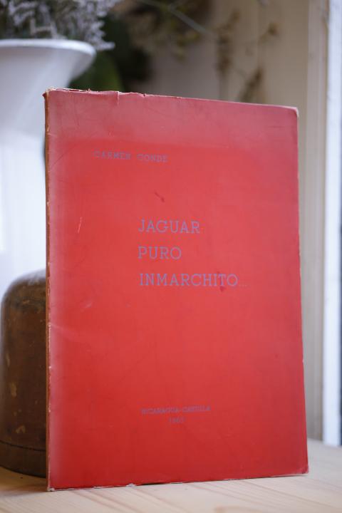Publicado: Madrid: Imp. Gráfica Comercial, 1963 Autor: CONDE, Carmen. Título: Jaguar puro inmarchito. Información adicional: Primera edición. 4to. 44 pp. + 2h. Edición de 500 ejemplares. Nombre y sello ant. poseedor en portada.