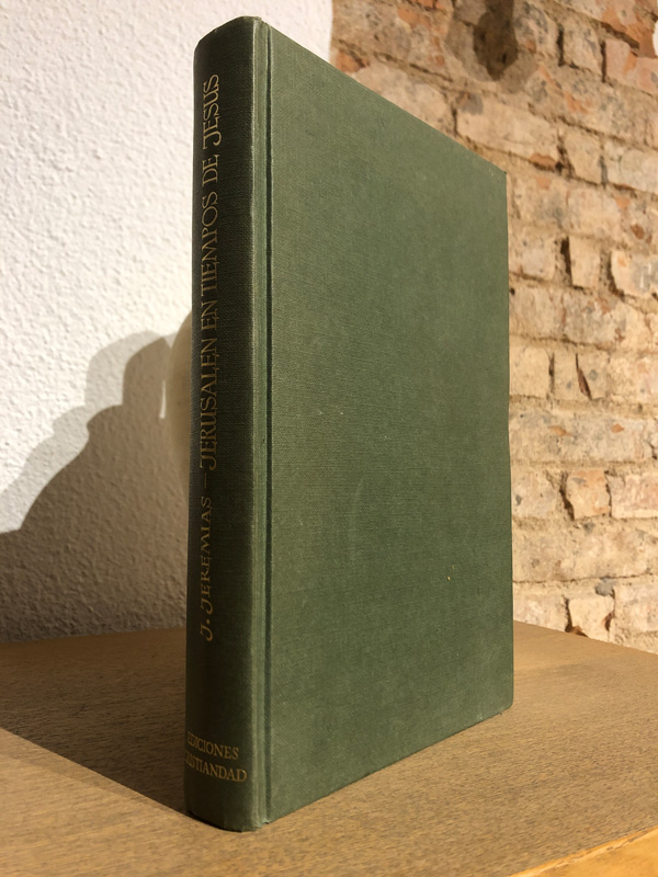 Publicado: Madrid: Ediciones Cristiandad, 1985 Autor: JEREMIAS, Joachim. Título: Jerusalén en tiempos de Jesús: estudio económico y social del mundo del Nuevo Testamento. ISBN: 8470572113 Encuadernación: Encuadernación de tapa dura Estado: Bien Información adicional: 4to. 409 pp. + 3 h. Encuadernación cartoné editorial. Buen estado.