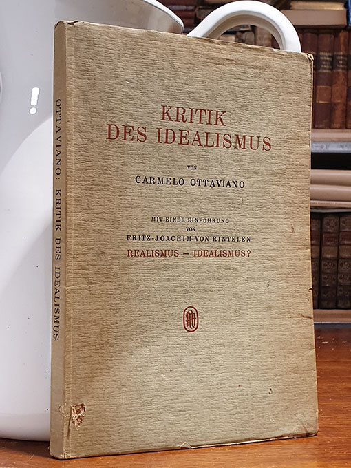 Publicado: Münster: Aschendorff 1941 Autor: Ottaviano, Carmelo. Título: Kritik des Idealismus. Mit einer Einführung von Fritz-Joachim von Rintelen: Realismus - Idealismus? Encuadernación: Rústica Estado: Aceptable Información adicional: 8vo. iv pp. + 184 pp. Paper wraps cover, slightly rubbed.