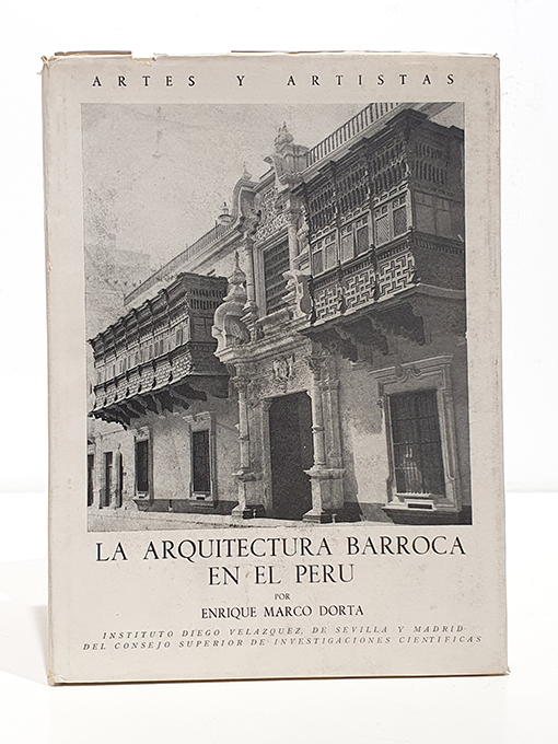 Publicado: Madrid: Instituto Diego Velázquez del Consejo Superior de Investigaciones Científicas, 1957 Autor: DORTA, Enrique Marco. Título: La arquitectura barroca en el Perú. Encuadernación: Encuadernación de tapa dura Estado: Bien Información adicional: 4to. 48 pp. + 47 láminas en negro. Encuadernación tela editorial con sobrecubierta esta deteriorada, interior y encuadernación en perfecto estado.