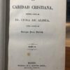 Publicado: Madrid: Imprenta de F. Martínez García, 1863 Autor: PÉREZ ESCRICH, Enrique. Título: La Caridad Cristiana. Segunda parte del Cura de la Aldea, novela original de... Tomo V. Encuadernación: Encuadernación de tapa dura Estado: Muy bien Información adicional: 8vo. 254 pp. Bonita encuadernación de época en holandesa con los cortes dorados, alguna rozadura menor. Interior impecable estado.