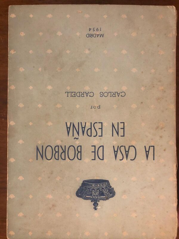 Publicado: Madrid: Agemundo, 1954 Autor: CARDELL, Carlos. Título: La Casa de Borbón en España. Encuadernación: Encuadernación de tapa blanda Estado: Aceptable Información adicional: 4to. 589 pp. + 1 h. Aceptable estado.