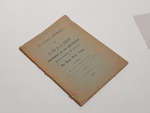 Publicado: Sevilla 1908 Autor: MARTÍN CAMPOS, Manuel. Título: La Divina Pastora y el voto de la Asunción. Recuerdo de un Centenario seguido de una Memoria acerca de La Salve por . Encuadernación: Rústica Estado: Pobre Información adicional: 4to. 83 pp. + 8 pp-. Rústica, fatigado.