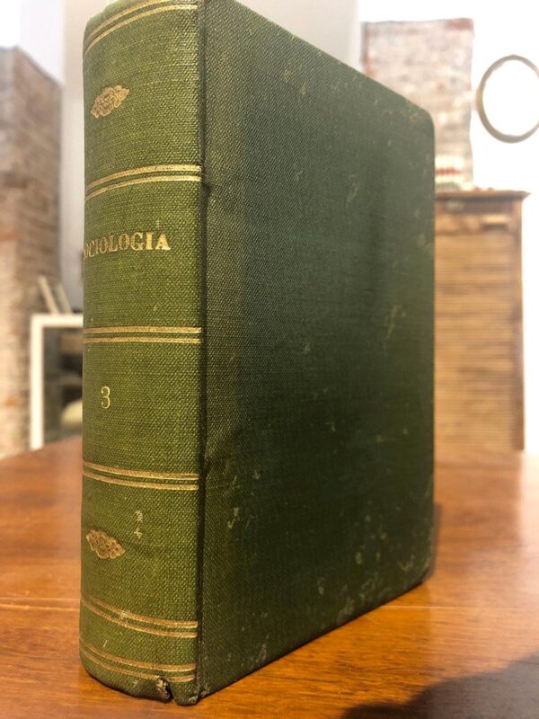 Publicado: Barcelona: Heinrich y Cia., editores, 1905 Autor: SERGI, G. / Simon N. PATTEN / Guillermo de GREEF. Título: La evolucion humana individual y social. Hechos e ideas. Version española S. Valenti Camp. [JUNTO CON:] Teoría de las Fuerzas Socialespor Simon N. PATTEN. [JUNTO CON:] Las leyes sociológicas por Guillermo de GREEF. Encuadernación: Encuadernación de tapa dura Estado: Aceptable Información adicional: 8vo.I: 141 pp. + 175 pp. II: 199 pp. III: 192 pp. Encuadernadas en un solo volumen en tela no editorial de época, tela con manchitas. Las obras se encuentran todas en buen estado.