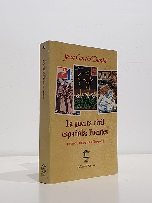 Publicado: Barcelona: Crítica 1985 Autor: GARCÍA DURÁN, Juan Título: La Guerra Civil española: Fuentes (Archivos, bibliografía y filmografía) Encuadernación: Encuadernación de tapa blanda Estado: Muy bien Información adicional: 8vo. 443 pp. Encuadernación editorial con solapas. En perfecto estado