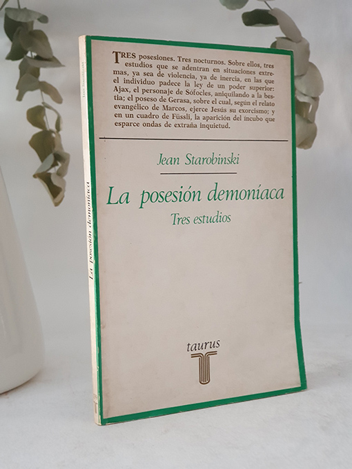 Publicado: Madrid: Taurus 1976 Autor: STAROBINSKI, Jean. Título: La posesión demoníaca. Tres estudios. ISBN: 8430611398 Encuadernación: Encuadernación de tapa blanda Estado: Bien Información adicional: 4to. 117 pp. Rústica. Buen estado.