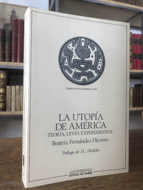Publicado: Barcelona: Anthropos, 1992 Autor: FERNÁNDEZ HERRERO, Beatriz. Título: La utopía de América. Teoría. Leyes. Experimentos. Prólogo de J.L. Abellán. Encuadernación: Encuadernación de tapa blanda Estado: Muy bien Información adicional: 4to. 460 pp. Encuadernación editorial con solapas. Perfecto estado.