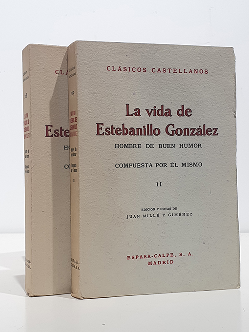 Publicado: Madrid: Espasa-Calpe 1934 Autor: GONZALEZ, Esteban. Título: La vida de Estebanillo González hombre de buen humor. Compuesta por él mismo. 2 tomos. Edición y notas de Juan Millé y Giménez. Encuadernación: Rústica Estado: Como nuevo Información adicional: 8vo. 259 pp. y 270 pp. Rústica. Intonso, como nuevo.