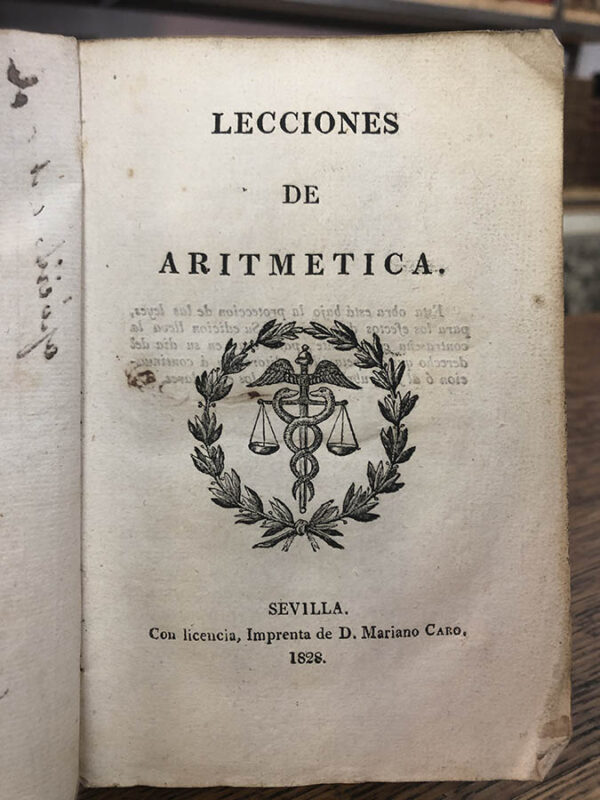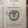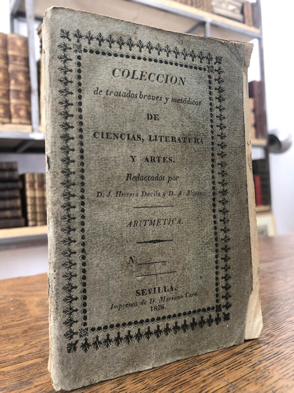 Publicado: Sevilla: Imprenta de D. Mariano Caro, 1828 Autor: HERRERA Y ÁVILA, J. / A. ALVEAR. Título: Lecciones de aritmética. Encuadernación: Rústica Estado: Aceptable Información adicional: 8vo. 187 pp. + 2 h. Rústica conservando las cubiertas originales.