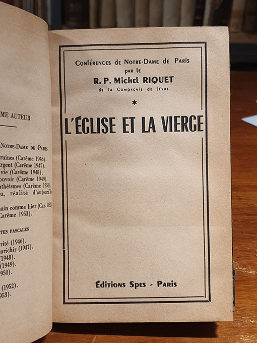 Publicado: Paris: Spes 1954 Autor: Riquet, Michel. Título: L´Église et la Vierge. [Bonita y decorativa encuadernación holandesa de época] Encuadernación: Encuadernación de tapa dura Estado: Muy bien Información adicional: 8vo. 217 pp. Encuadernación holandesa de época con nervios en buen estado.