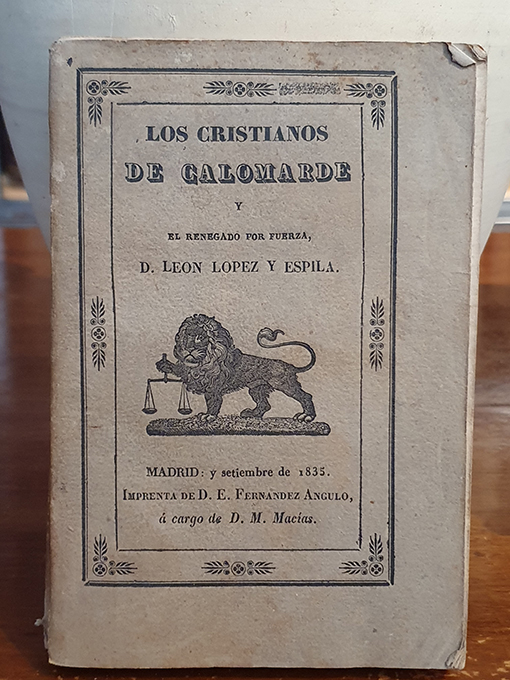 Publicado: Madrid: E. Fernández Angulo 1835 Autor: LÓPEZ Y ESPILA, León. Título: Los cristianos de Calomarde y el renegado por fuerza. Encuadernación: Encuadernación de tapa blanda Estado: Muy bien Información adicional: 8vo. 272 pp. + 1 h. Encuadernación rústica. En buen estado. "Curiosa relación de los sucesos políticos en España desde 1819, y descripción de nuestras posesiones africanas"