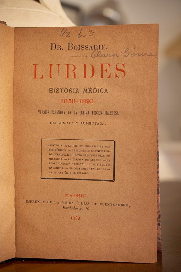 Lourdes. Historia Médica. 1858-1893. Versión española de la última edición francesa. Reformada y aumentada. La historia de Lourdes ha sido escritaq por los médicos. Trescientos certificados de curaciones. Como se comprueban los milagros. La clínica de Lourdes. La peregrinación Nacional anual y los mil enfermos. El histerismo en Lourdes. La sugestión y el milagro.