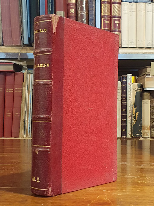 Publicado: Paris: Biliothèque Charpentier 1899 Autor: SANDEAU, Jules. Título: Madeleine. Ouvrage couronné par l´Academie Française Dans sa séance du 22 juillet 1847. Encuadernación: Encuadernación de tapa dura Estado: Muy bien Información adicional: 8vo. 279 pp. Holandesa de época con nervios. En buen estado.