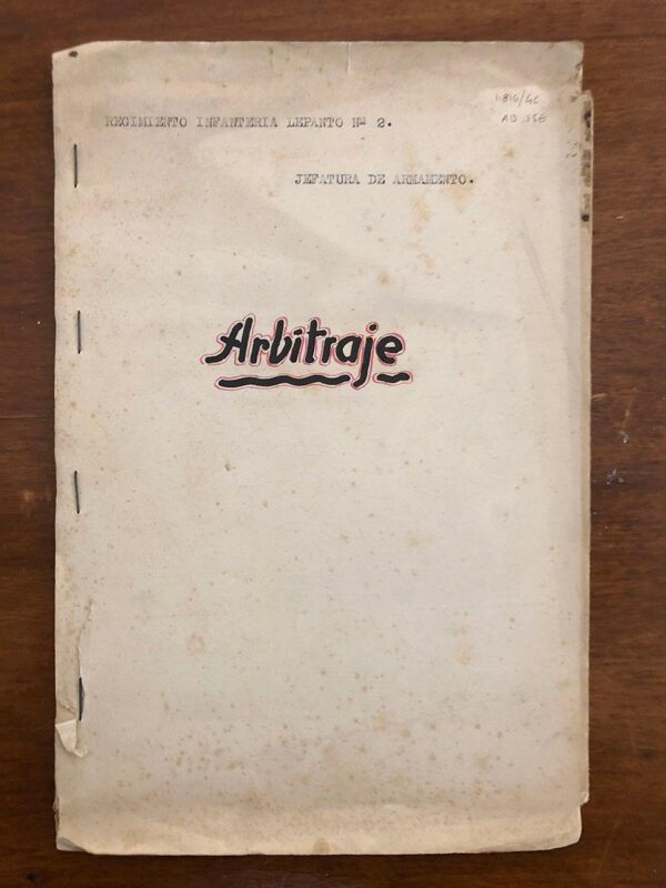 MANUSCRITO MECANOGRAFIADO.- Arbitraje-. Regimiento de Infantería Lepanto, 2. Jefatura de Armamento.