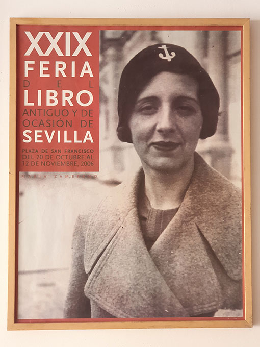 Maria Zambrano. Cartel de la XXIX Feria del Libro Antiguo de Sevilla. 2006. Reproducción de fotografía, gran tamaño.