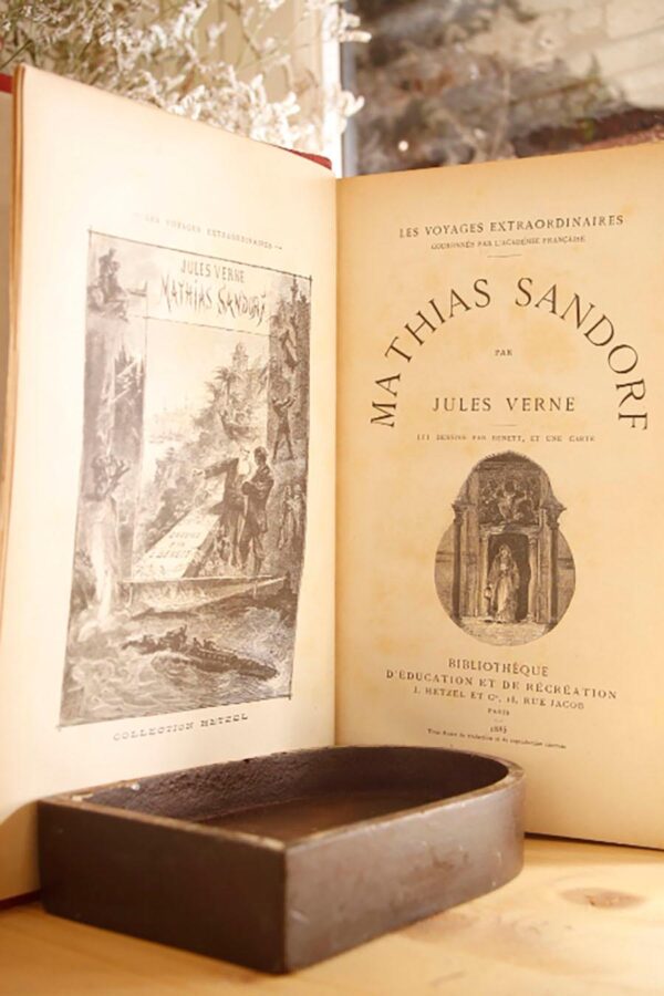 Publicado: Paris, Bibliothèque d'éducation et de récréation J. Hetzel, les voyages extraordinaires, 1885 Autor: VERNE, Jules. (Julio) Título: MATHIAS SANDORF. Encuadernación: Encuadernación de tapa dura Estado: Muy bien Información adicional: 4to. 552 pp. Encuadernación editorial en holandesa. Cortes dorados y espejados. Muy buen estado. Numerosas ilustraciones por Bennet y un mapa. Discreto exlibris de caucho anterior poseedor en portadilla.