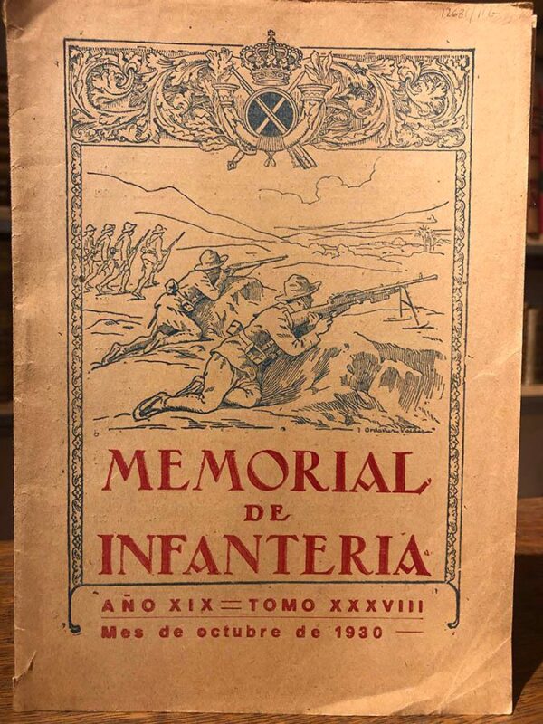 Publicado: Toledo: Imprenta del Colegio de Huérfanos de Intantería, 1930 Título: Memorial de Infantería. Año XIX. Tomo XXXVIII. Octubre de 1930. Encuadernación: Rústica Estado: Aceptable Información adicional: 4to. unas 100 pp. aprox. Rústica en rozada.
