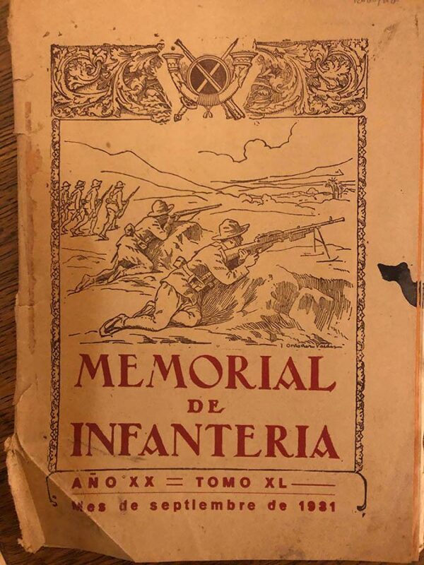 Publicado: Toledo: Imprenta del Colegio de Huérfanos de Intantería, 1931 Título: Memorial de Infantería. Año XX. Tomo XL. Septiembre de 1931. Encuadernación: Rústica Estado: Pobre Información adicional: 4to. unas 100 pp. aprox. Rústica fatigada.