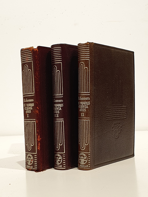 Publicado: Madrid: Aguilar, 1962 Autor: GUTIEEREZ GAMERO, Emilio. Título: Mis primero ochenta años. 3 tomos . Completo. Colección Crisol Nos: 245, 246 y 247 Encuadernación: Encuadernación de tapa dura Estado: Bien Información adicional: 12vo. I: 1 retrato + 726 pp. II: 1retrato + 471 pp. III: 1 retrato + 498 pp. Encuadernación piel editorial roja. Papel biblia. El tomo I con leves rozaduras en lomo y puntas, los otros dos tomos en muy buen estado.