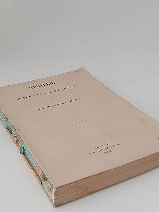 Publicado: Sevilla: Imp. La Andalucía 1864 Autor: TUBINO, Francisco M. Título: Murillo. Su época, su vida, sus cuadros. Encuadernación: Sin encuadernar Estado: Pobre Información adicional: 8vo. 301 pp. Ejemplar para encuadernar. Sin cubiertas y suelto aunque completo y limpio.